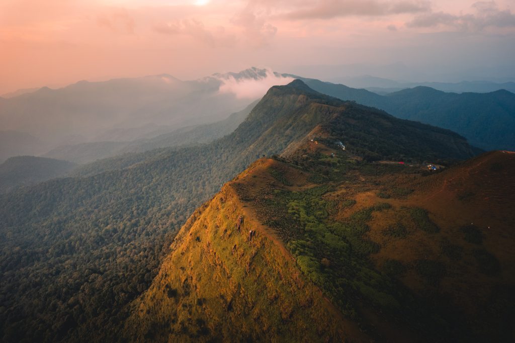 Aerial view of mountains in the morning at Mae Hong Son, Thailand, high angle mountain view hiking and nature background image